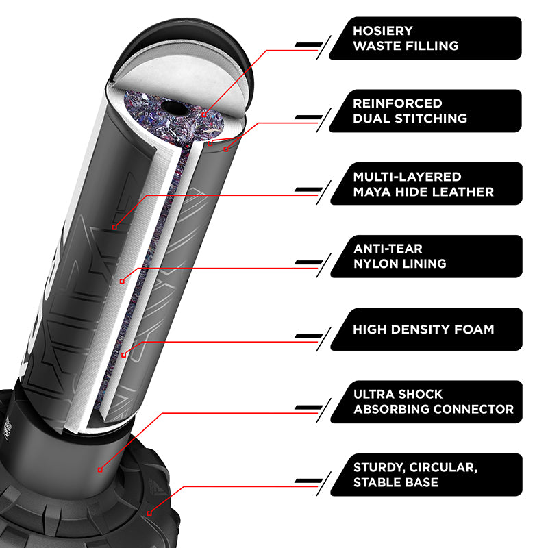 Si vous voulez améliorer vos compétences en sports de combat et vivre une séance d'entraînement unique en son genre, alors le sac de frappe autoportant RDX Kara est fait pour vous. Augmentez votre niveau de boxe avec une absorption de chocs avancée qui rebondit après les coups puissants. Le RDX Kara vous offre toutes les sensations fortes sans les tracas pour un entraînement pratique à tout moment, n'importe où. Libérez toute votre force intérieure et vivez des moments intenses en donnant des coups puissants !