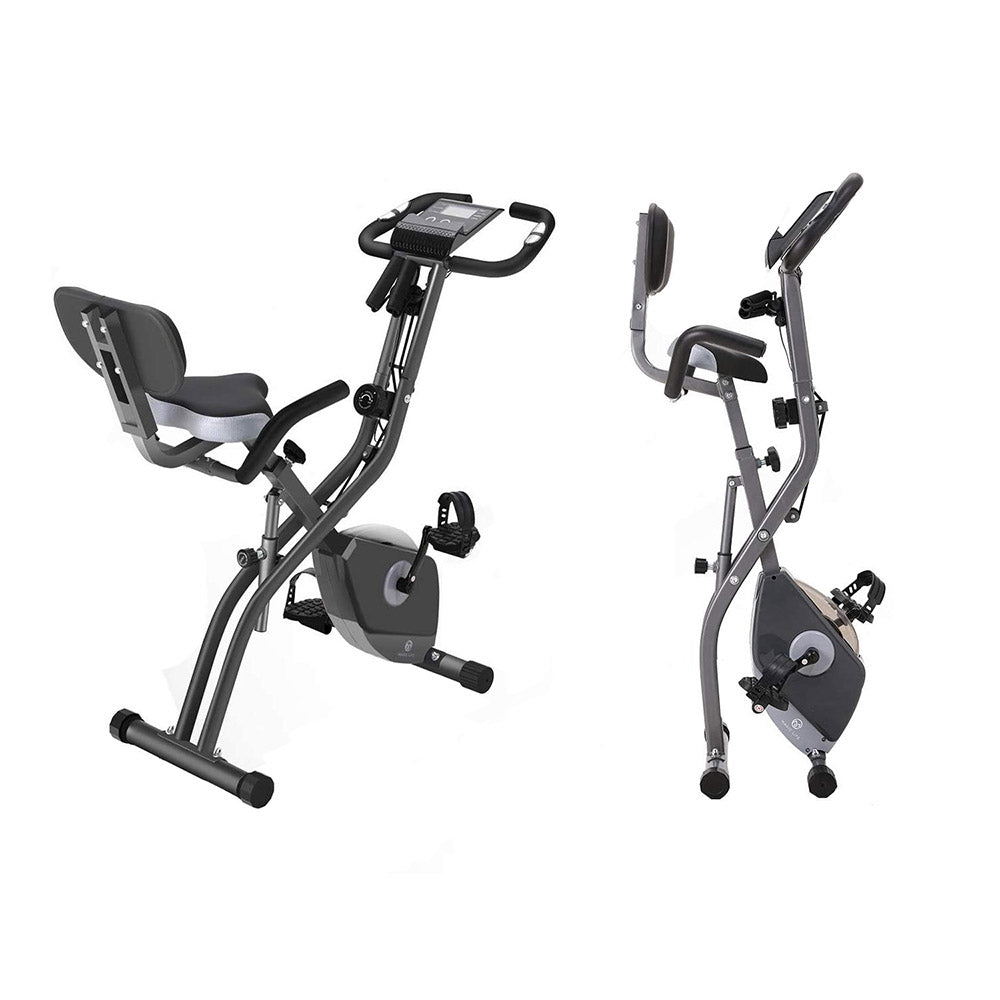 Vélo d'appartement avec dossier, corde en caoutchouc, écran LCD, corde de renforcement des bras, siège réglable, pliable, facile à ranger, 6 niveaux de vitesse